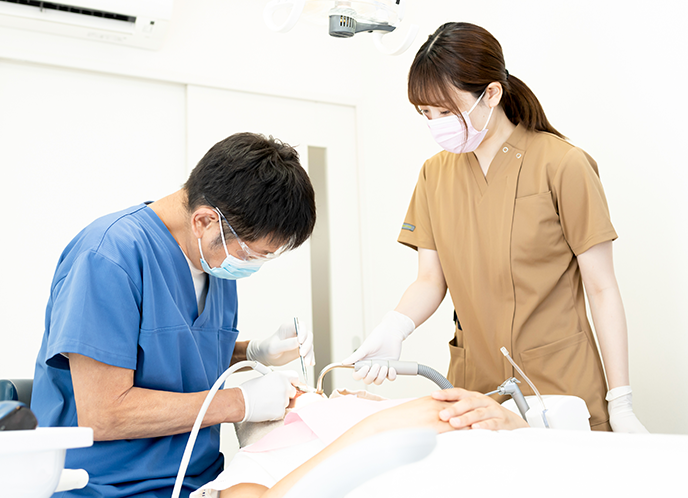 むし歯や歯周病の治療はもちろん、小児歯科、インプラント、ホワイトニング、審美治療まで、幅広く診療し、特に「予防・メンテナンス」に力を入れ、長期的なお口の健康維持を重視しています。